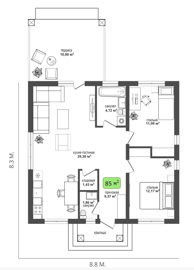Построим уютный одноэтажный дом из газобетона с тремя спальнями за 5 месяцев